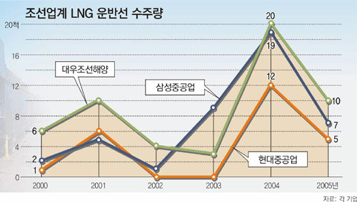 삼성중공업은 2002년 이후 고부가가치 선박 중심의 수주전략을 펼쳐 전체 수주량에서 LNG선이 차지하는 비중이 2002년 9%에서 2004년 29%로 수직상승했다.