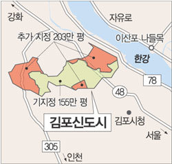 김포신도시는 당초 498만 평 규모로 추진됐다가 국방부의 요구로 155만 평으로 줄어든 상태였다.
