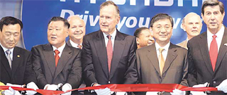 5월 미국 앨라배마 공장 준공 기념식에서도 조지 부시 전 미국 대통령과 이희범(李熙範) 산업자원부 장관, 홍석현(洪錫炫) 전 주미 대사, 밥 라일리 앨라배마 주지사 등이 좌우에 섰다(사진).