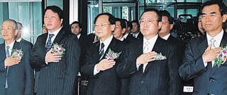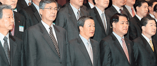 왼편으로는 김쌍수(金雙秀) LG전자 부회장과 구본준(具本俊) LG필립스LCD 부회장이 나란히 한다.