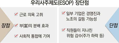 하지만 이런 장점이 기업 규모나 상황에 관계없이 모든 기업에 적용되는 것은 아니다. 미국의 권위 있는 경영학술지 하버드비즈니스리뷰 6월호는 ESOP가 긍정적인 효과를 낼 수 있는 조건으로 △갓 설립돼 빠른 성장을 추구할 때 △회사 문화가 종업원 위주일 때 △치열한 시장경쟁으로 위기를 겪을 때 △획기적인 변화가 필요할 때 등을 꼽았다.