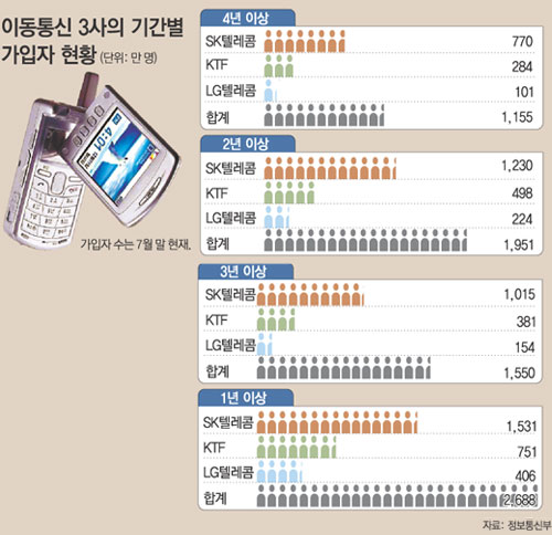 SK텔레콤, KTF, LG텔레콤 등 이동통신 3사의 3년 이상 가입자는 올해 7월 말 현재 1550만 명이어서 1차적으로 이들이 혜택을 받게 된다.