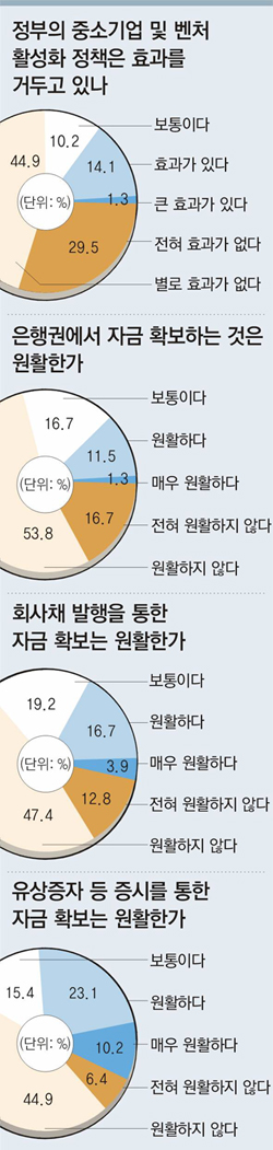 특히 본보 설문에 참가한 코스닥 등록기업 최고경영자(CEO)들은 “은행권이 기업의 실력을 믿고 돈을 빌려 주는 신용대출을 너무 소홀히 하고 있다”고 입을 모았다.