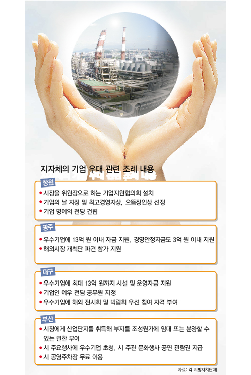 부산시를 시작으로 대구시, 경남 창원시, 광주시 등이 잇따라 기업 우대 관련 조례안을 마련하고 있다.
