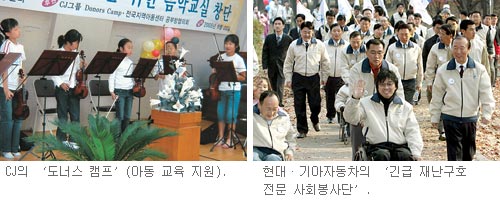 이 그룹이 재난구호 전문 사회봉사단을 설립한 것은 처음이다. 그룹 계열사에서 자원한 2000여 명의 임직원들은 환자 응급 조치나 구호장비 사용법 등 긴급 구조 관련 교육을 받은 뒤 태풍 수해 지진 등 국가 재난이 발생할 때 현장에 투입된다.