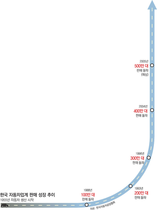 자동차공업협회는 한국 자동차의 생산 시점을 1955년 ‘시발자동차’의 탄생으로 잡고 있다. 2005년은 한국에서 자동차가 생산된 지 꼭 50년이 되는 해다.