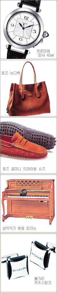 이탈리아 가죽 명품 브랜드 토즈가 올해 새로 선보인 드라이빙 슈즈 ‘곰미니’는 운전자를 위해 만든 밑창이 부드러운 신발이다. 평소 하이힐을 즐겨 신는 여자 친구의 운전석에 슬며시 넣어 주면 감동할만한 선물이다. 착용감이 편해 레저용으로도 신을 수 있다. 색상은 검정과 갈색. 46만 원.