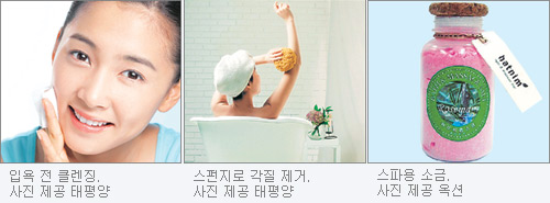 향이 더해진 천연소금 입욕제를 넣는 방법도 있다. 소금은 각질과 노폐물 제거에 도움을 주고, 그 속에 들어 있는 미네랄 성분이 피부를 촉촉하게 해준다는 것이 스파 세러피스트들의 말이다.