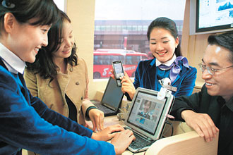 지금은 개인휴대단말기(PDA), 노트북 컴퓨터 등으로 인터넷에 접속하지만 올해 3분기(7∼9월)에는 삼성전자에서 와이브로 휴대전화가 나온다.
