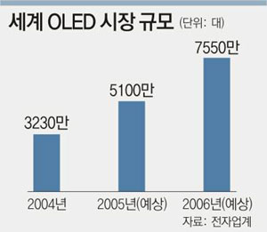 삼성SDI는 올해 말까지 4655억 원을 투자해 세계 최초로 능동형(AM) OLED 전용 생산라인을 짓고 2007년 1월 본격 양산에 들어간다. 삼성전자도 2005년 5월 40인치 크기의 TV용 OLED를 개발했다. 대용량화를 위한 생산력 높이기와 연구개발(R&D)에도 노력 중이다.