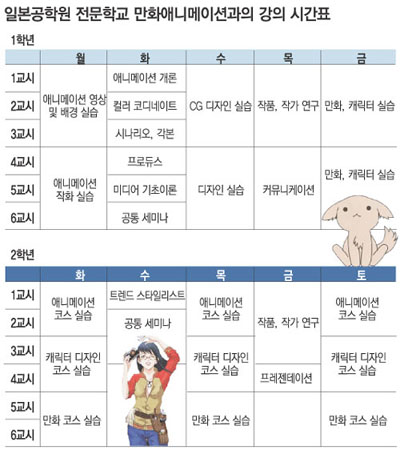 애니메이션 전공 1학년에 재학 중인 허남주(許男朱·23·여) 씨는 어렸을 때부터 동경했던 애니메이터의 꿈을 이루기 위해 건국대 영문과를 휴학하고 일본행을 택한 케이스. 먼저 입학한 친구의 소개로 들어왔는데 1년간 이 학교에 다니면서 선택을 잘했다는 생각을 여러 번 한다고 말했다.