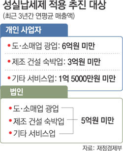 성실납세제는 최근 3년간 평균 매출액이 업종별로 1억5000만∼6억 원이면서 복식부기를 하는 사업자에게 전자장부를 통해 간편하게 세금 신고를 할 수 있도록 하는 제도.