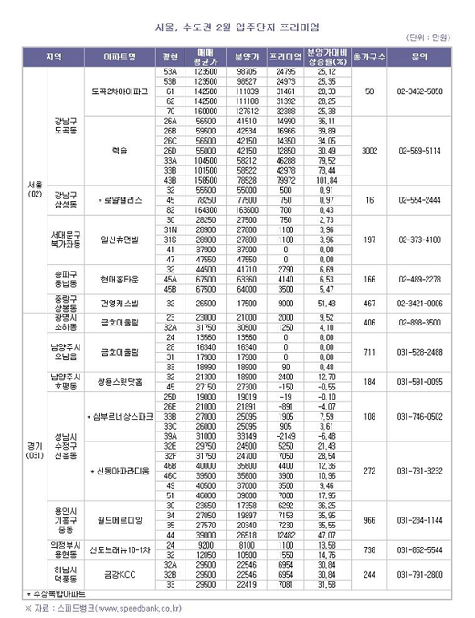 이밖에 도곡동의 도곡2차 아이파크는 프리미엄이 25%를 넘고 있다.