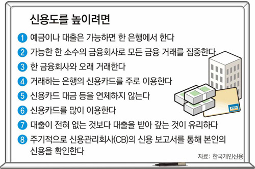 어쩔 수 없이 여러 곳과 거래하더라도 가능한 한 거래하는 금융회사의 수를 줄여 집중도를 높여야 한다. 한번 거래를 시작한 금융회사와는 거래관계를 오래 유지할수록 좋다.