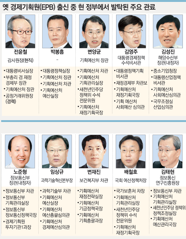 EPB 출신의 약진은 옛 EPB의 핵심 인재들이 주로 기획예산처에 포진해 있고 현 정부가 부처 간 재정문제 조정을 중요시하기 때문이기도 하다.