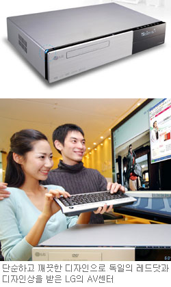 올해 독일의 레드닷과 iF디자인상을 수상한 LG전자의 ‘AV센터’는 외관만으로는 ‘무엇에 쓰는 물건인지’ 고개를 갸웃하게 한다. 정체를 밝히자면 이 제품은 타임머신 기능을 활용한 TV시청 및 녹화, 인터넷, 게임, 영화·음악·사진 감상이 가능하고, 하나의 TV 화면에 방송 화면과 인터넷 창을 동시에 보여 주는 기능을 가지고 있다.