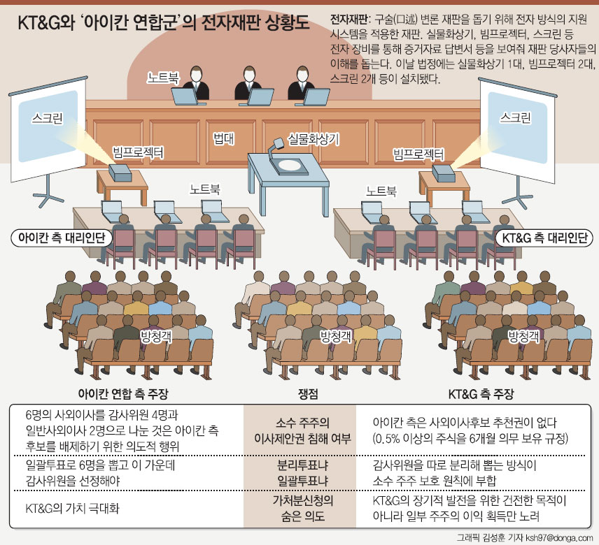 KT&G-아이칸 “서류 치우고 말로만…” 전자재판 화끈