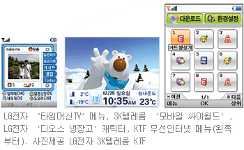SK텔레콤, KTF, LG텔레콤은 모두 무선 인터넷 포털 GUI를 화이트 바탕에 블랙 텍스트를 기본으로 디자인했다. 아이콘 크기도 작고 움직임도 거의 없다. 포인트를 주는 라인이나 숫자에도 명도가 낮은 빨강 파랑 등을 썼다. 화려하고 움직임이 큰 아이콘은 사용 속도를 느리게 하며 작은 휴대전화 화면에 균형있게 배치하기도 어렵다. KTF 신규서비스팀의 임상현 과장은 “무선 인터넷 접속이 상용화되면서 화려함보다 편리함이 GUI 디자인의 열쇠가 되고 있다”고 말했다.