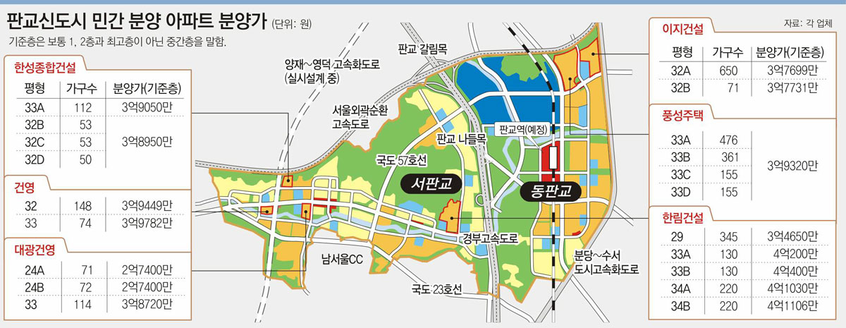 이는 판교에서 가까운 분당신도시 32평형 아파트 시세(5억∼7억 원)에 비해 최대 3억 원 싸다. 따라서 판교 30평형대 아파트에 당첨되면 전매 제한이 풀리는 10년 뒤에 팔 때 적지 않은 시세 차익을 기대할 수 있어 청약 경쟁이 더욱 치열해질 전망이다.