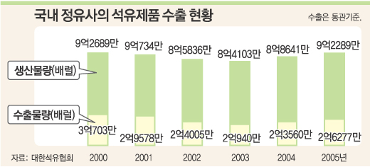 실제로 국내 정유업체들이 생산하는 석유제품의 30%는 중국 등 해외로 수출되고 있으며 정유업체들은 한 해 매출의 절반을 수출로 채우고 있다.