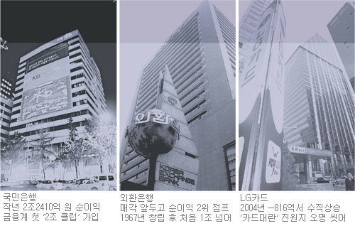 ‘카드 대란’의 진원지였던 LG카드는 가장 드라마틱한 사례로 꼽힌다. LG카드는 지난해 1조3631억 원의 순이익을 올려 ‘1조 원 클럽’에 가입했다. 이 회사는 직전 해인 2004년에는 816억 원의 적자를 냈다.