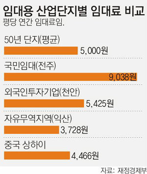 입주 기업이 내는 임대료는 연간 평당 5000원 선. 충남 천안시에 있는 외국인 투자기업 임대단지 임대료(5425원)와 비슷한 수준이다.