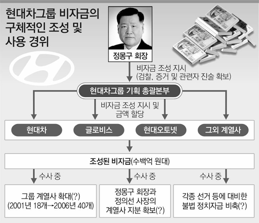 검찰은 이를 밝히기 위해 지난달 26일 현대차그룹 본사를 압수수색한 뒤 압수물을 분석하고 현대차그룹 자금담당 임원을 계속 소환해 조사했다.