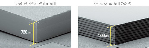 이 회사는 이 기술을 이용해 두께가 50마이크로미터(μm·1μm는 100만분의 1m)인 2기가비트(Gb) 낸드플래시 8개를 쌓은 16Gb 칩을 560μm 두께로 만드는 데 성공했다고 덧붙였다.