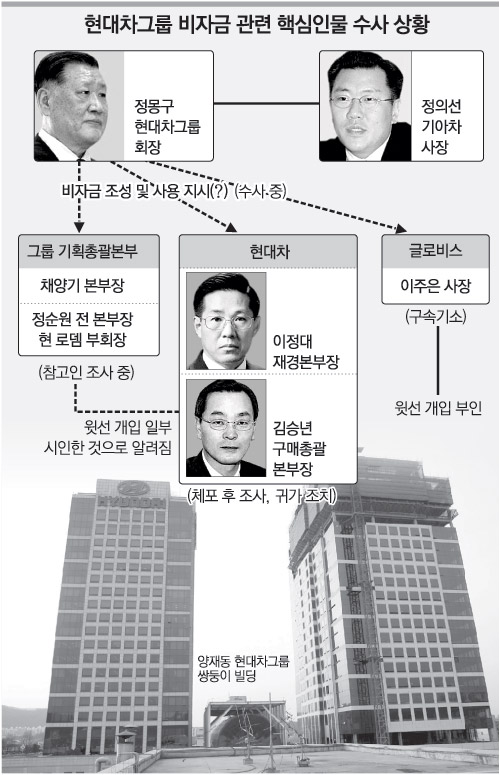 “인정할 것을 인정했다”는 것은 정 회장 부자가 비자금 조성과 사용 등을 지시했다는 진술을 검찰이 확보했다는 뜻이다. 윗선의 개입 여부에 대해 끝내 부인하고 구속 기소된 이주은(李柱銀) 글로비스 사장과는 다르게 진술했다는 것이다.