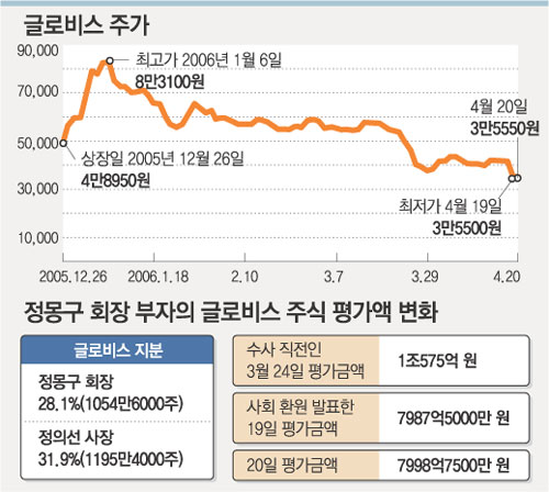 삼성증권 김학주(金學柱) 리서치센터장은 “대주주가 빠진 글로비스의 주식가치는 생각하기 어렵다”며 “별다른 대책이 없다면 소액주주들이 적지 않은 피해를 보게 돼 사회문제가 될 가능성이 높다”고 말했다.