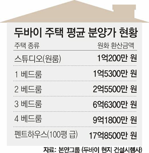 한국인이 주로 관심을 갖는 부동산은 방이 3개 딸린 주택으로 가격은 6억∼7억 원대. 이 같은 주택의 임대 수익은 연간 3600만 원 정도. 두바이의 주택 가격은 매년 30%씩 치솟고 있어 3, 4년 안에 2배 이상의 시세 차익을 올릴 수 있다는 것이 현지 부동산 업체의 설명이다.