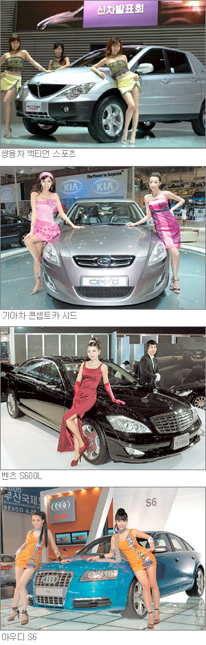 이 밖에 △볼보코리아의 컨버터블 ‘올 뉴C70 T5’ △재규어코리아의 스포츠카 뉴XK와 최고급 세단 다임러 △다임러크라이슬러코리아의 스포츠유틸리티차량(SUV) 모델 ‘지프 커맨더’가 눈길을 끌었다.