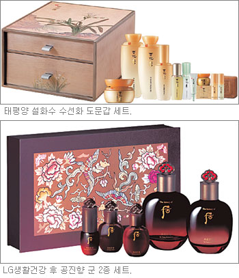 10만 원대 예산으로 한방 화장품을 선물하려면 지난달 새롭게 선보인 미백 기능 한방 영양수인 ‘설화수 정(晶) 2종 세트’(10만5000원)도 좋다. 기미 잡티로 칙칙해진 피부를 맑게 가꿔 주는 효과가 있다.