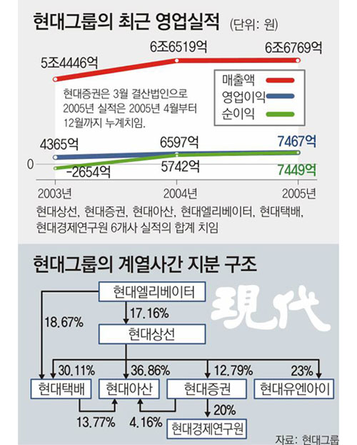 더욱이 이번 사태를 현대가의 ‘적통(嫡統)’ 찾기와 연관 짓는 시각이 없지 않다. ‘며느리 집안’에 현대그룹을 넘길 수 없다는 ‘범현대가’의 기류도 일부 감지된다.