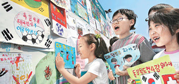 전국 8000여 명의 초등학생과 학부모 등 모두 2만 여 명이 참가한 이날 행사에서는 독일 월드컵에서 한국축구대표선수들의 선전을 기원하는 ‘응원벽화 그리기’(사진)를 비롯해 마당극, ‘디카폰카’ 콘테스트 등 부대행사가 열렸다. 이 대회는 1994년 시작돼 지금까지 약 10만 명의 어린이가 참가했다고 주최 측은 설명했다.