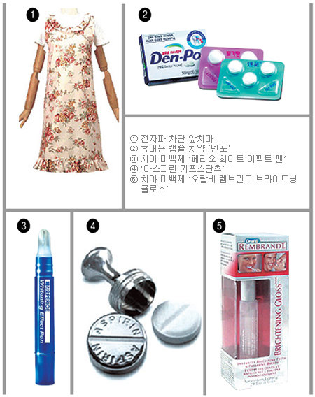 ‘씹는 치약, 입 냄새 측정기, 알약 담는 커프스, 전자파 차단 앞치마….’