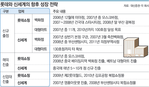 대신증권 정연우 연구원은 “백화점 부문 3위에 머물던 신세계의 매출이 내년에는 2위로 올라설 것으로 보인다”며 “롯데가 1위 자리를 지켜온 백화점 부문에서 두 회사 간 경쟁이 본격화될 것”이라고 말했다.