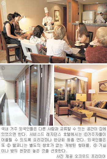 장기 체류 외국인이 주로 묵는 서비스드 레지던스 호텔은 이런 ‘교류의 욕구’를 충족시키기 위해 다양한 시도를 한다. 서울 강남구 삼성동 오크우드호텔에서는 한국어 강좌와 요리 강습은 물론 이웃들이 함께 모일 수 있는 ‘반상회’도 개최한다. 투숙객 전용 라운지에서는 간단한 가족 모임이나 친구 초청 행사도 열 수 있다.