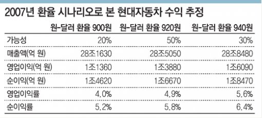 현대차에 가장 큰 타격을 주는 것은 달러당 원화 환율의 하락(원화가치는 상승) 추세다. 환율이 뚝뚝 떨어지면서 가만히 앉아서 수익이 줄어들고 있다.
