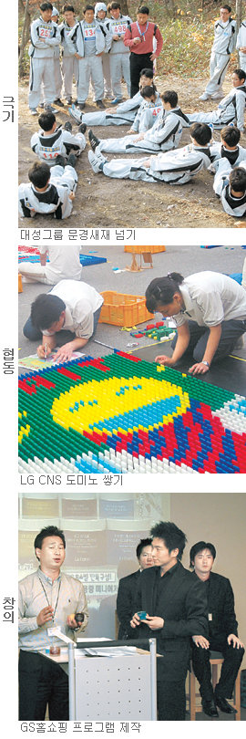 신입사원 연수 교육에서 극기훈련과 팀워크 다지기는 오래전부터 이어온 ‘단골 메뉴’. 그러나 요즘은 극기훈련과 팀워크 훈련도 독특한 아이템으로 재미를 주고 있다.