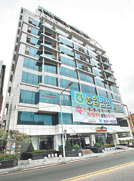 정윤재 전 대통령의전비서관과 각별한 사이로 알려진 부산지역 건설업자 김상진 씨가 실소유주인 I기업 사무실이 있는 부산 금정구 부곡동 A타워. 부산=최재호 기자