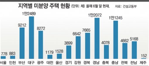 건설교통부에 따르면 6월 말 현재 전국 미분양 아파트는 8만9924채. 이 중 부산 경남은 2만1284채(23.6%)로 가장 큰 비중을 차지한다.