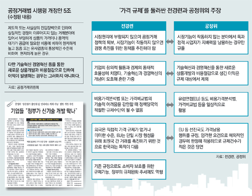 하지만 수정안에도 가격 규제는 ‘제도적 또는 진입장벽으로 실질적 경쟁이 이뤄지지 않는 거래 분야’라는 단서만 붙었을 뿐 그대로 남았다.