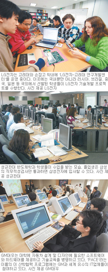 삼성전자는 ‘삼성 정보통신 트랙’ 프로그램을 고려대 성균관대 한양대 경북대 부산대 등 14개 대학에서 가동 중이다. 삼성전자가 정보통신 분야에서 필요한 기술을 제안하면 각 대학에서 이에 맞춘 교과과정을 편성해 운영하는 방식이다. 정보통신 트랙에 선정된 교과과정을 이수한 학생들은 삼성전자 정보통신 분야 입사 때 혜택을 받는다.