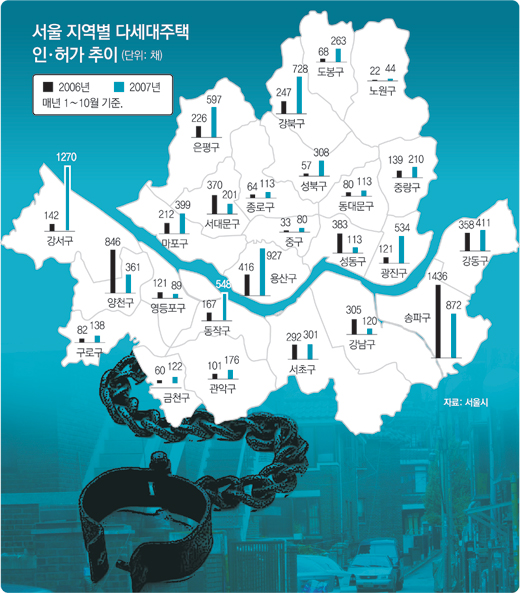 실제로 강서구에서 새로 인허가를 받은 다세대주택은 1270채로 작년(142채)보다 794% 급증했다. 용산구도 416채에서 927채로 122% 늘었다. 이 밖에 성북구는 308채가 인허가를 받아 440%, 은평구는 597채로 164% 증가했다.