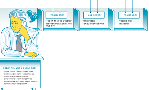 기자가 “매달 200만 원 정도를 펀드에 투자하고 싶은데 상품을 추천해 달라”고 하자 창구 여직원은 기다렸다는 듯 전단지를 펼쳐보였다.