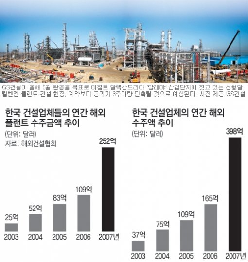 현대건설도 카타르에서 2006년 7억7000만 달러짜리 천연가스 플랜트를 수주한 데 이어 지난달 9억2000만 달러 규모의 비료공장 설비 공사를 따내는 성과를 냈다.