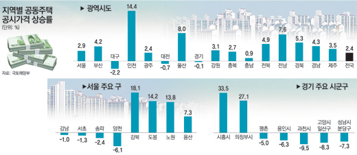 강북 도봉 노원구 등 강북지역은 뉴타운과 경전철 신설 등 각종 개발 호재(好材)가 이어진 데다 이 지역 소형 아파트에 실수요 및 일부 투기 수요가 몰리면서 올해 공시가격이 지난해보다 많이 올랐다.