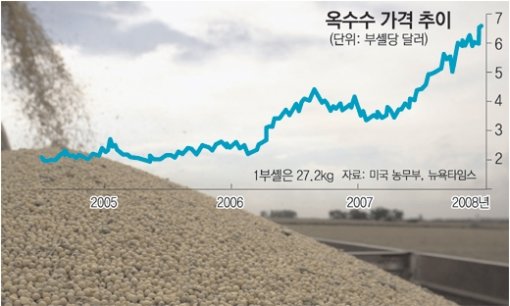 최근 미국에선 중부지역의 폭우로 9일 곡물선물거래시장에서 옥수수 가격이 부셸(약 27kg)당 6.57달러로 사상 최고가를 기록하기도 했다. 미국에선 대두 파종도 지난해에 비해 평균 16% 늦어졌다.