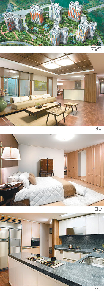 193m² 이상은 복도와 현관 등의 천장을 격자무늬로 꾸몄다. 여닫이문도 격자무늬로 꾸며 전통 느낌이 나도록 했다. 모델하우스는 분당 정자역 앞 주택공원에 있다.